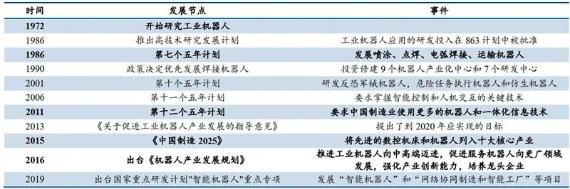 ▲国内工业机器人发展政策节点