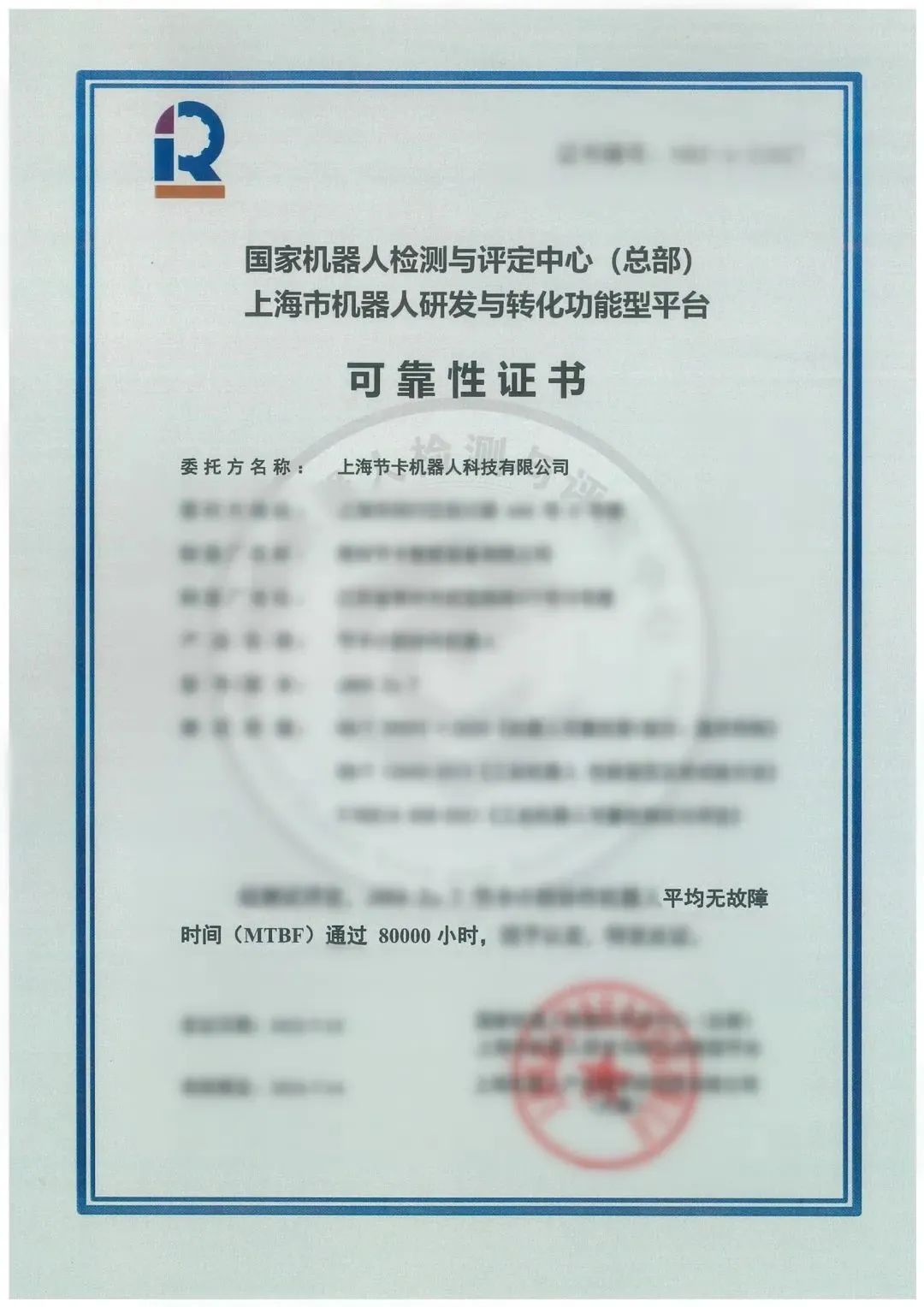 近日,上海节卡机器人科技有限公司(以下简称“节卡机器人”)顺利通过了米兰·(milan)中国机器人有限公司官网的 MTBF 80000小时测评。